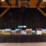 Die Kunstpädagogin Annette Lange, die ebenfalls seit 15 Jahren am Schulstandort in Fürstenberg tätig ist, erläuterte die Arbeiten der Jahrgänge 7 und 8: Diese gestalteten individuelle Landschaften mit mehreren Horizontebenen, die zunächst erkannt, skizziert, coloriert und anschließend auf Finnpappe übertragen wurden. Mit Mixed-Media-Techniken formten die Schülerinnen und Schüler dann experimentierfreudig die Oberflächen der Landschaften. Lange bezeichnete die Werke als sogenannte „Tunnel-Landschaften“, die Tiefe und Perspektive auf besondere Weise erfahrbar machen.